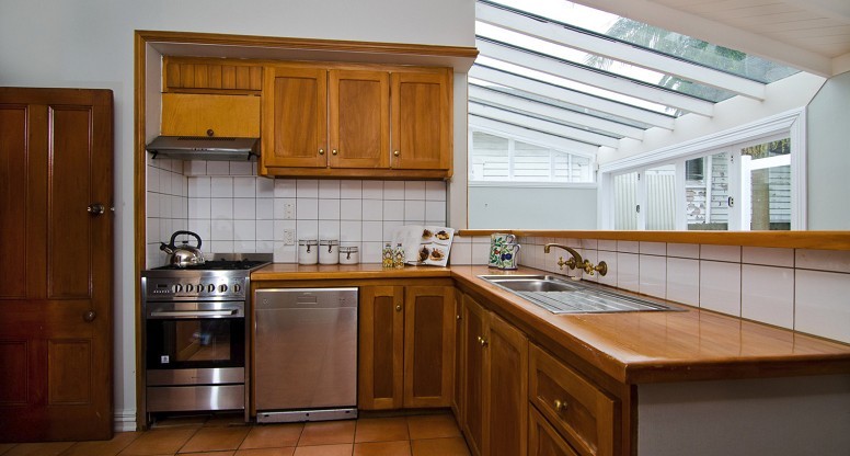 The original kitchen was a testament to 80’s or perhaps early 90’s design. Wooden tones, accented by terracotta tiles and brass fittings.